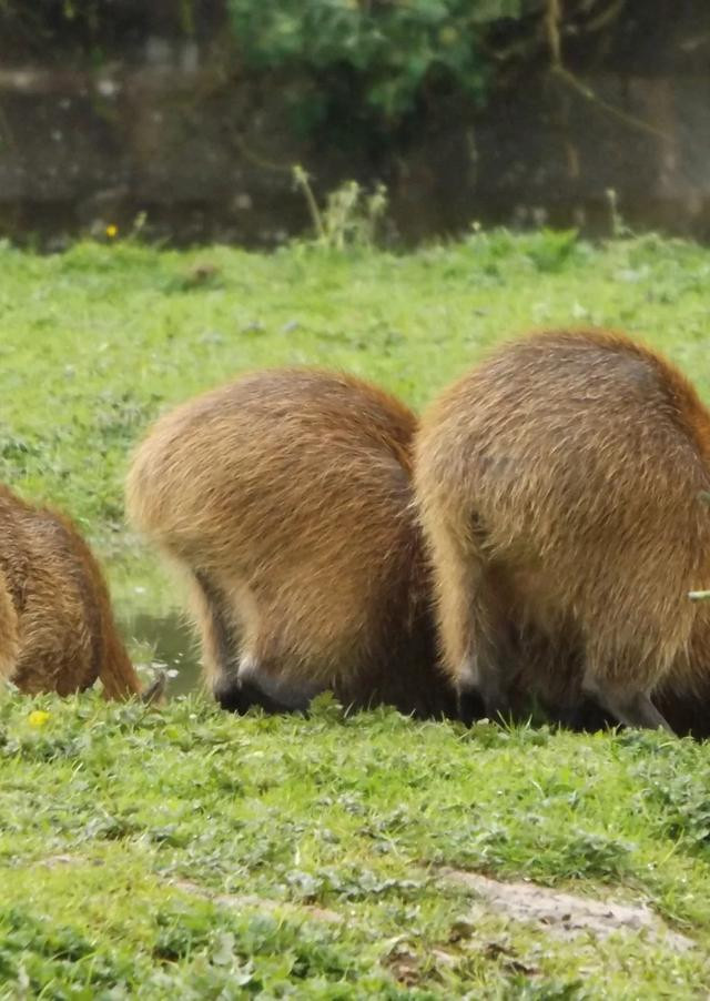 值得一提的是,水豚会利用盲肠中的微生物把难以消化的纤维素分解,使纤维素中的营养物质更容易被吸收。盲肠是大肠的一部分,位于大肠的起始位置。水豚的大肠只能吸收水分,在盲肠中分解好的食物会顺着大肠排出体外,变成富有营养的糊状便便,之后水豚会将这类便便重新吃到肚子里。不过水豚也不是什么便便都吃,对于已得到充分消化吸收、没啥营养的便便,水豚就不会再“重复利用”了。