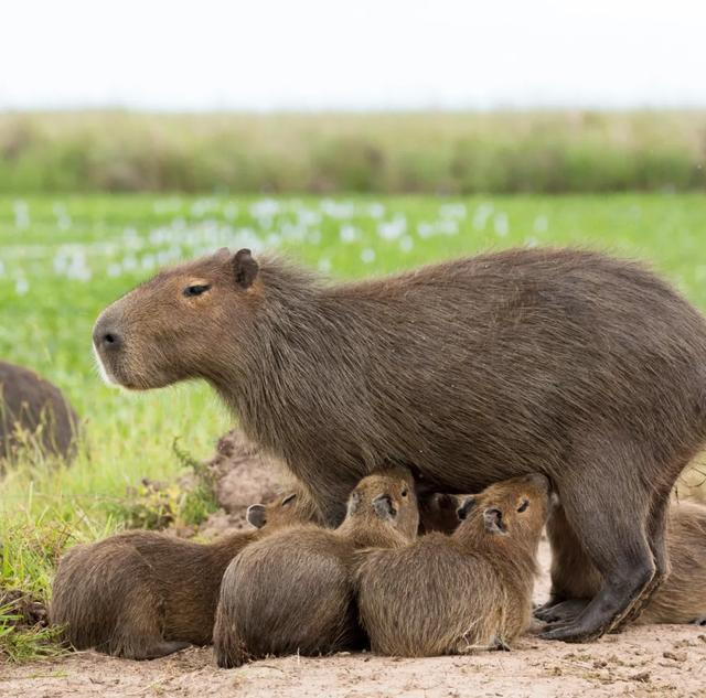除了“领导岗位”,水豚群中还有独特的育儿制度。雌性水豚会通过互帮互助来解决觅食和哺乳之间的矛盾。当水豚群里的成年水豚需要外出觅食时,会留下一只成年雌性水豚负责所有水豚宝宝的哺乳和保护工作,就像把所有孩子都交到托儿所一样,这样其余的成年水豚就可以放心地外出。每次留下的“托儿所老师”并不是同一个,而是由所有成年雌性水豚轮流担任。